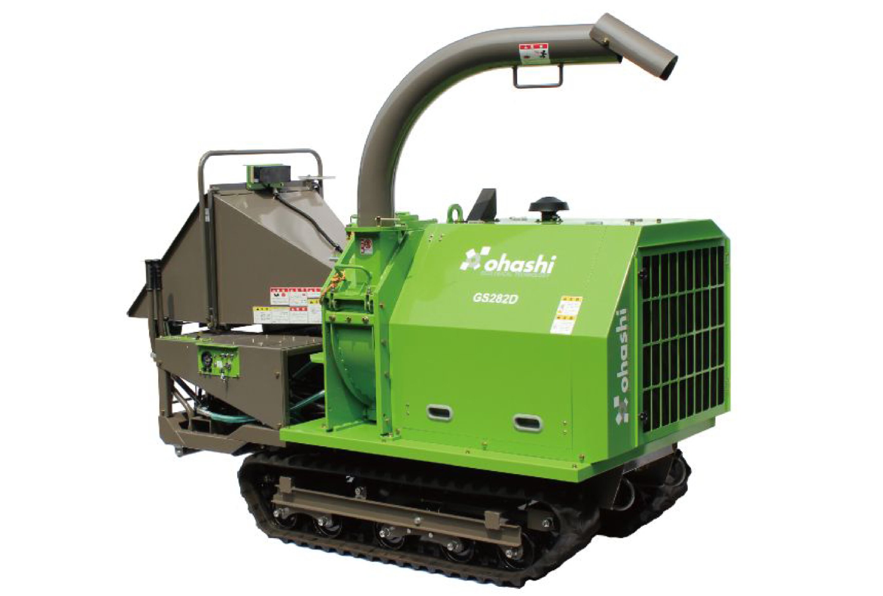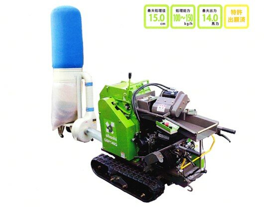大桥牌日产树木粉碎机GS400D 说明:粉碎物粒径在2cm以下;可以粉碎坚硬的材料(如竹子);电脑自动控制粉碎物的粒径大小及粉碎速度;履带自走,移动方便;邮箱容量40L,节 ……
